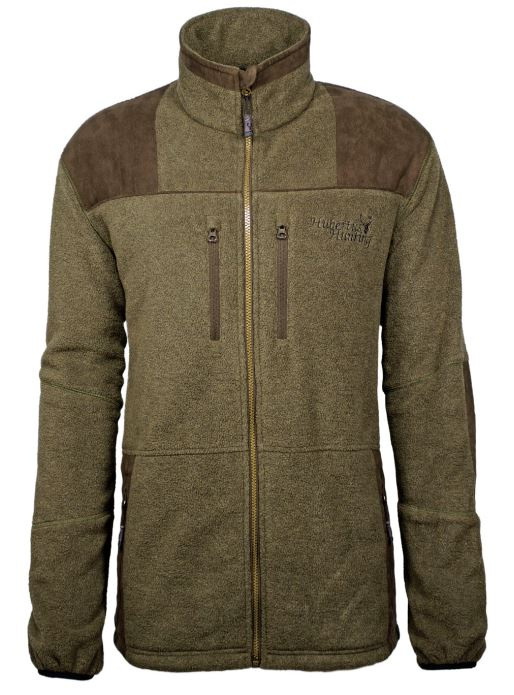 Lightweight and soft fleece sweater with reinforcement over the shoulders results in less friction under your backpack's shoulder straps. The high collar protects you from biting winds, and there is a protective flap of fleece between the zipper and chin. The Hubertus Fleece Jacket has two spacious zippered side pockets and two chest pockets.