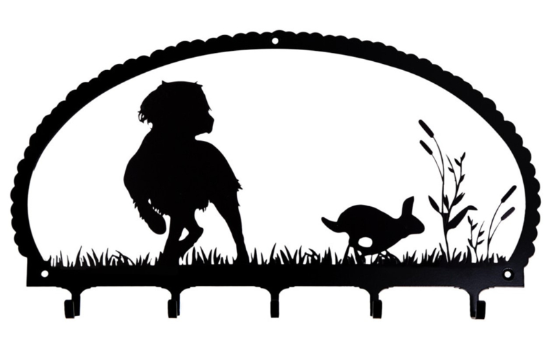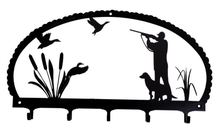 Artikelnummer: kr10 OverzichtLeuk metalen hangrek om uw sleutels, hondenlijntjes, dummy's aan op te hangen. Gemaakt van zwart gelakt gecalvaniseerd staal, afmeting circa 43 x 25 cm. Verkrijgbaar met spaniel, jager met hond en een Weimaraner. Andere hondenrassen op aanvraag.