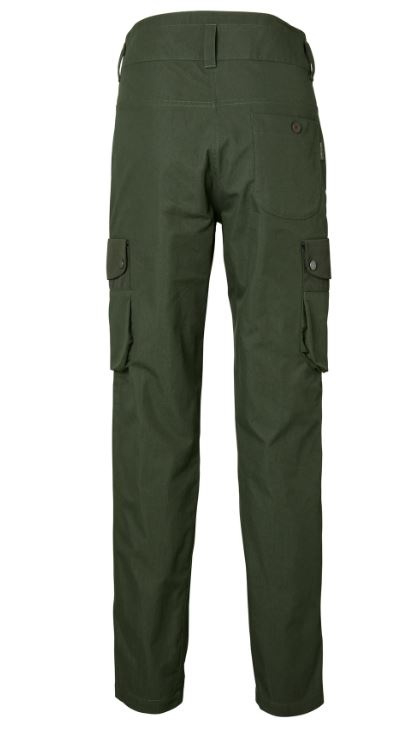 The Hale Pants are hunting pants inspired by classic work pants, and made from a durable fabric in a blend of organic cotton and polyamide. The waistband has loops and is slightly raised at the back to seal comfortably against the lower back. These hunting pants have front pockets, a back pocket, and two leg pockets with snap closures. The leg pocket flap is in durable Ripstop Cordura® material.