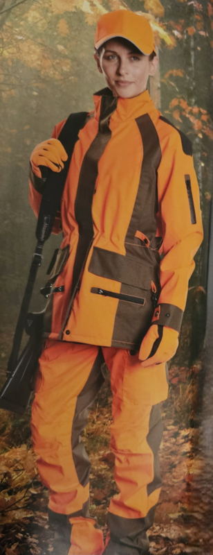 The Hubertus Dogkeeper women's jacket is a very hardwearing jacket which is very protective. Thanks to the OS Tex membrane, the jacket is windproof, waterproof, and breathable. The orange safety color ensures you stand out. The Hubertus Dogkeeper jacket features multiple practical pockets, is adjustable at the waist, and has anti-slip on the shoulders so that a bag or rifle does not easily slide off.